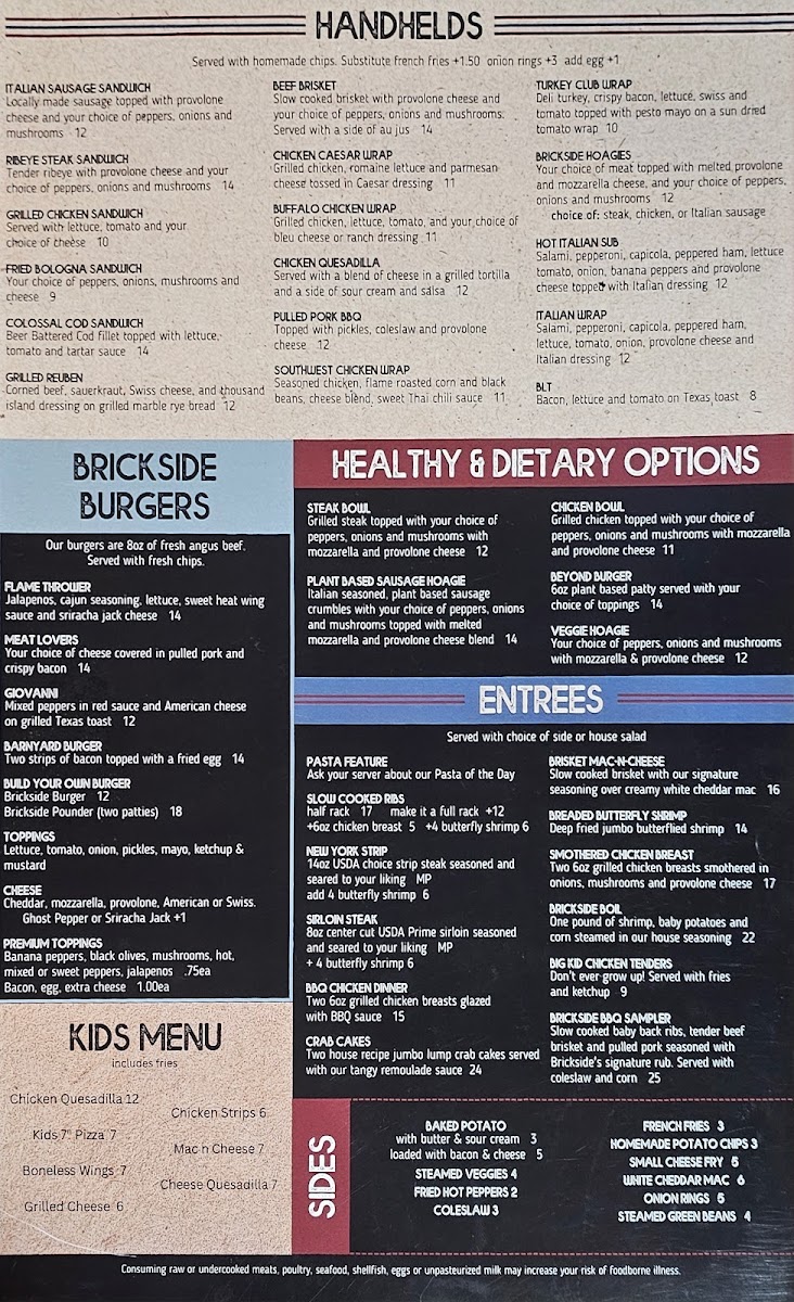 Welcome to Brickside Bar & Grille, a culinary gem located at 101 Lodgeville Rd, Bridgeport, WV. This vibrant establishment offers a diverse menu that caters to various tastes, ensuring a memorable dining experience for everyone. Guests rave about the delicious chicken breasts smothered in grilled onions and provolone cheese, perfectly complemented by a refreshing salad and ice-cold beers.